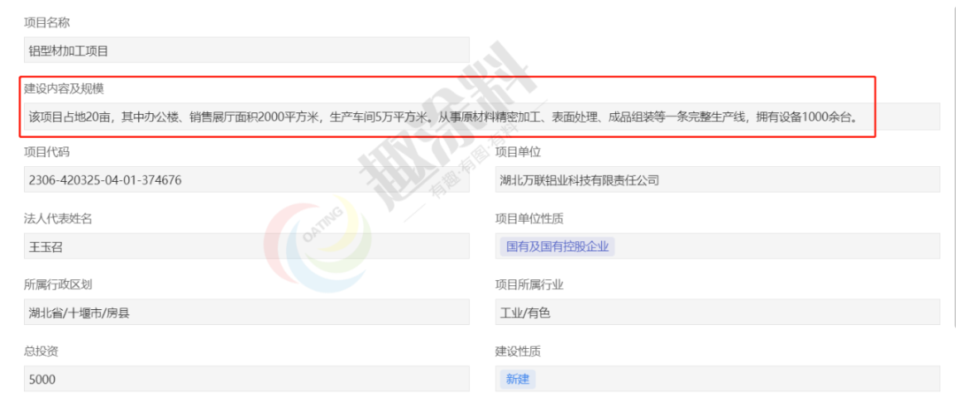 2023年6月28日,湖北萬聯(lián)鋁業(yè)科技有限責(zé)任公司,鋁型材加工項目,進(jìn)行企業(yè)投資項目備案。