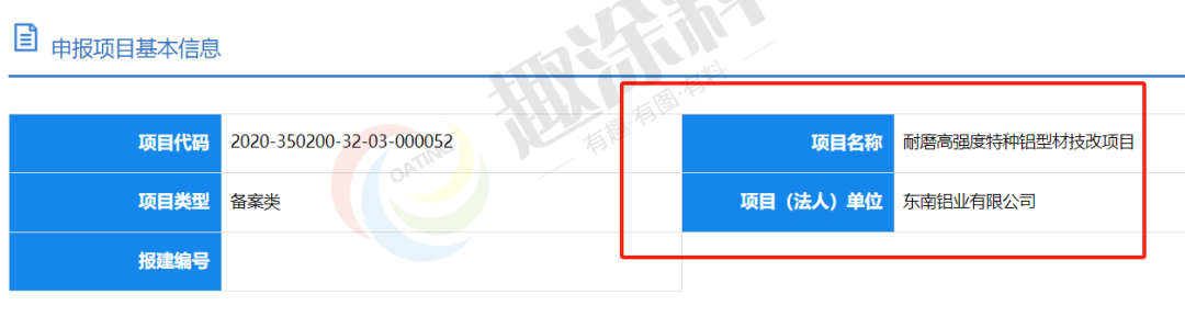 2023年9月18日,東南鋁業(yè)有限公司,耐磨高強(qiáng)度特種鋁型材技改項(xiàng)目,申請企業(yè)項(xiàng)目備案。