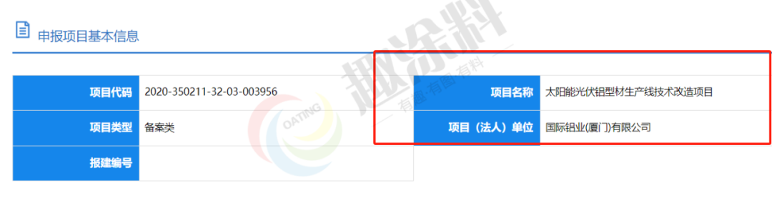 2023年9月19日,國際鋁業(yè)(廈門)有限公司,太陽能光伏鋁型材生產(chǎn)線技術(shù)改造項(xiàng)目,申請企業(yè)項(xiàng)目備案。