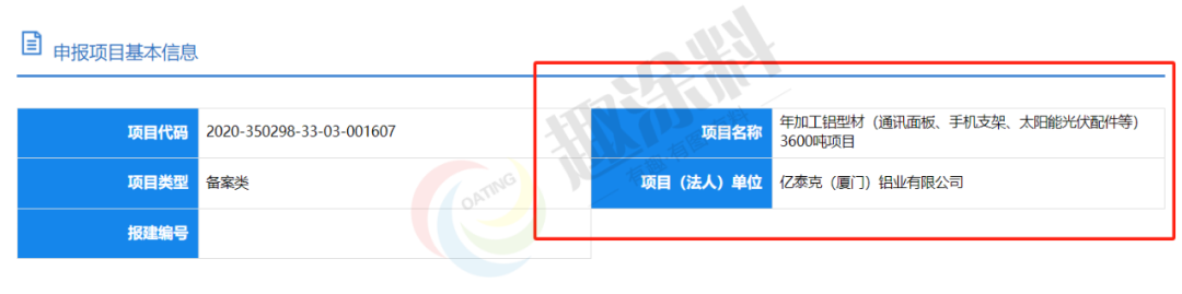 2023年9月18日,億泰克(廈門)鋁業(yè)有限公司,年加工鋁型材(通訊面板、手機(jī)支架、太陽能光伏配件等)3600噸項(xiàng)目,申請企業(yè)項(xiàng)目備案。