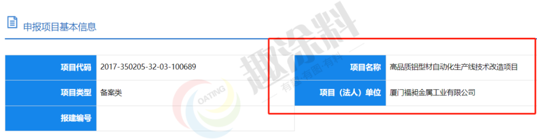 2023年9月19日,廈門福昶金屬工業(yè)有限公司,高品質(zhì)鋁型材自動化生產(chǎn)線技術(shù)改造項(xiàng)目,申請企業(yè)項(xiàng)目備案。