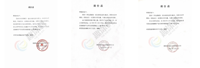 2024年5月7日,陜西富化化工有限責(zé)任公司對(duì)外發(fā)布《調(diào)價(jià)通知》指出,由于原材料價(jià)格不斷上漲,公司生產(chǎn)成本不斷上升。經(jīng)公司研究決定:自2024年5月8日起,公司供給貴司的沉淀硫酸鋇產(chǎn)品在原價(jià)格基礎(chǔ)上上調(diào)200元/噸。