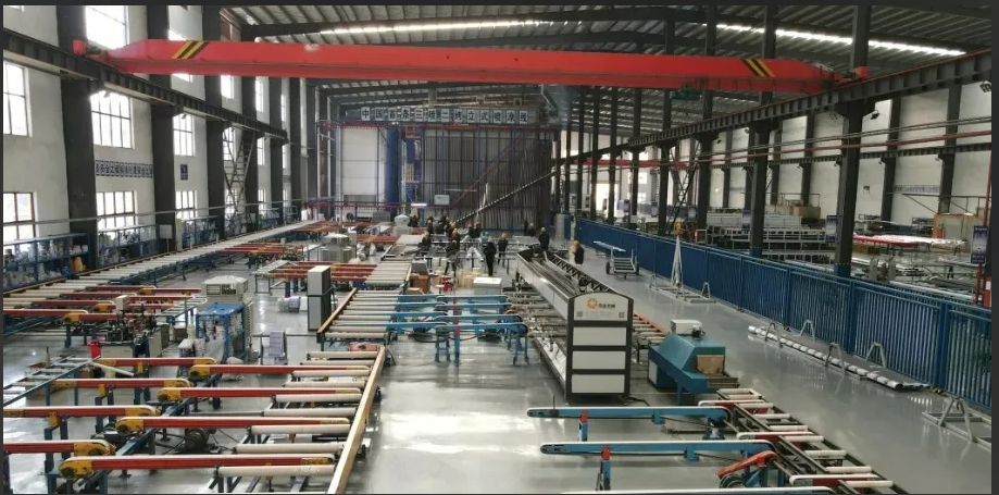 在向工業(yè)鋁型材轉(zhuǎn)型的過程中,虹鑫集團(tuán)不斷加大設(shè)備投入。引進(jìn)三噴二烤立式噴涂線只是虹鑫集團(tuán)轉(zhuǎn)型升級(jí)的一個(gè)舉措。近年來,虹鑫集團(tuán)投入建設(shè)擠壓生產(chǎn)線、立式粉末噴涂線、自動(dòng)氧化電泳線及其他隔熱、注膠、木紋生產(chǎn)線等,引進(jìn)先進(jìn)的管理理念,采用國內(nèi)外最先進(jìn)的生產(chǎn)設(shè)備,著力打造“虹鑫”品牌高檔鋁型材生產(chǎn)基地。