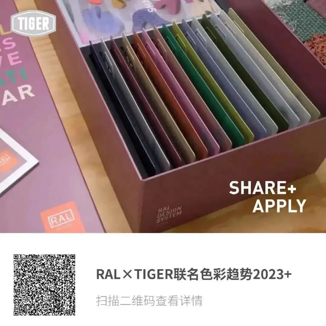 (PS:截至3月31日,打卡1688老虎新材料旗艦店,給客服留言:RAL×TIGER聯(lián)名色彩趨勢(shì)2023+,即可免費(fèi)獲取一份聯(lián)名色板,限量八份,送完為止?。?/p>