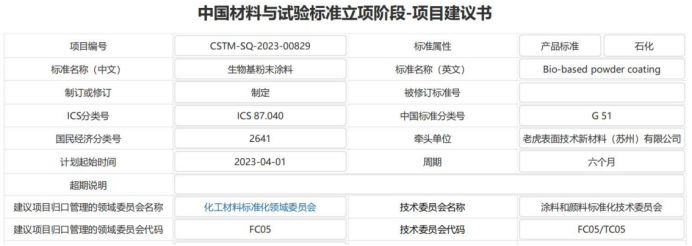 因此,老虎表面技術(shù)新材料(蘇州)有限公司牽頭制定的生物基粉未涂料相關(guān)的標(biāo)準(zhǔn),將對(duì)生物基粉未涂料的發(fā)展有著非常重要的意義。