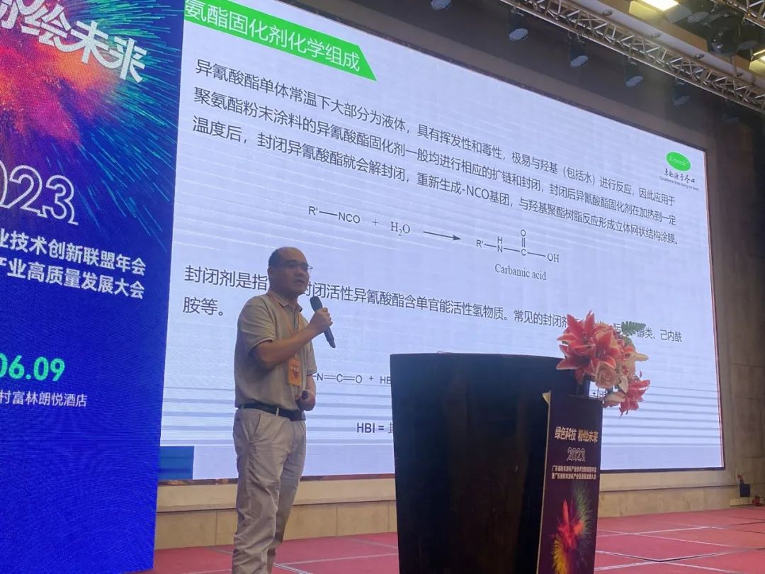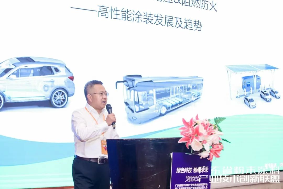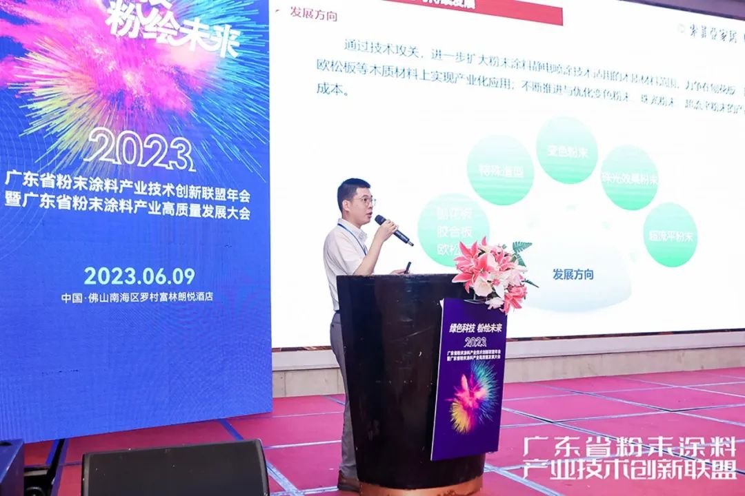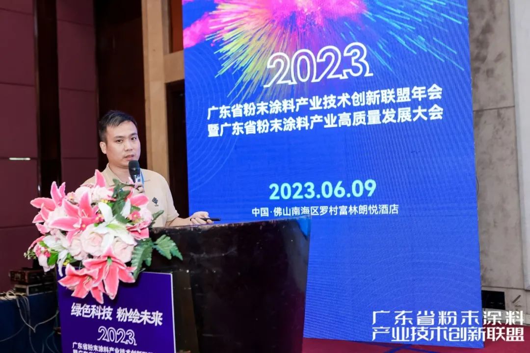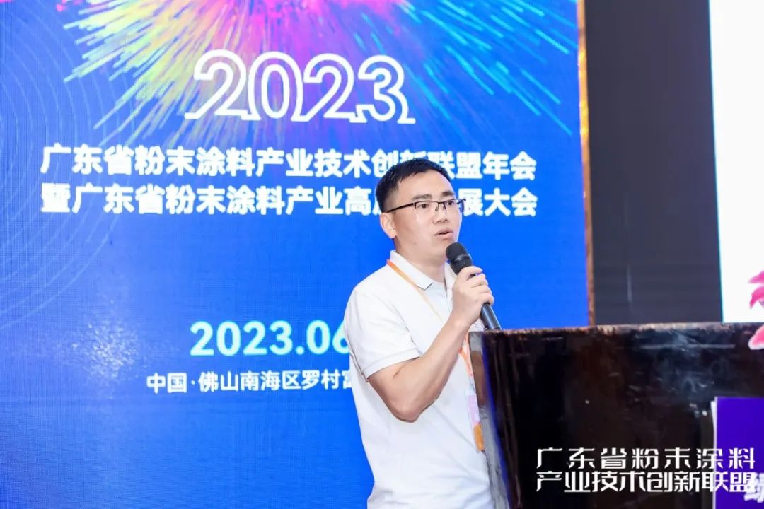 佛山市科技局副局長李國強、南海區(qū)科技局副局長余明光、聯(lián)盟理事長、擎天材料科技有限公司董事長彭浩民、中國化工學會涂料涂裝專業(yè)委員會秘書長吳向平、廣東省涂料行業(yè)秘書長呂水列、廣東工業(yè)大學教授易國斌、MF材涂聯(lián)動聯(lián)合創(chuàng)始人于永峰、廣東省涂料行業(yè)協(xié)會副秘書長王兵、廣東鳳鋁鋁業(yè)有限公司檢測中心主任魯炎卿、佛山市南海嘉多彩粉末涂料有限公司副總經(jīng)理李文岳、廣東景云環(huán)??萍加邢薰究偨?jīng)理潘元琛、中信戴卡股份有限公司子公司信和材料副總經(jīng)理張勝超、廣東清涼板材科技有限公司副總經(jīng)理羅彤輝、格力電器股份有限公司工藝工程師王良山、擎天材料科技有限公司高級工程師曾歷、索菲亞家居股份有限公司研究院院長助理鄭智華、廣東踔厲律師事務所田子軍主任律師、江門市皇宙實業(yè)有限公司市場部經(jīng)理陳實、六安捷通達新材料有限公司技術總監(jiān)翁士兵、欣美納米聞海濤、等出席本次會議。大會重點圍繞粉末涂料在專精特新道路上如何發(fā)揮作用、上游原材料技術創(chuàng)新、下游重點應用領域的技術發(fā)展等展開研討。