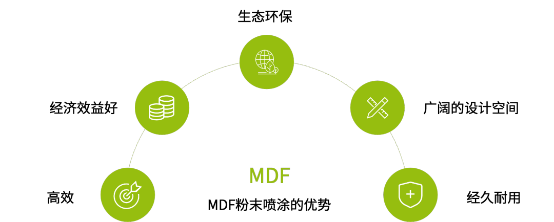 MDF噴粉技術在經濟效益、涂層表面柔韌程度以及在家具產品設計效果上廣泛的可行性等方面,都顯示出了強大的潛力,同時它還具有VOCs零排放的環(huán)保性,并且將環(huán)保的概念已延伸到加工階段。