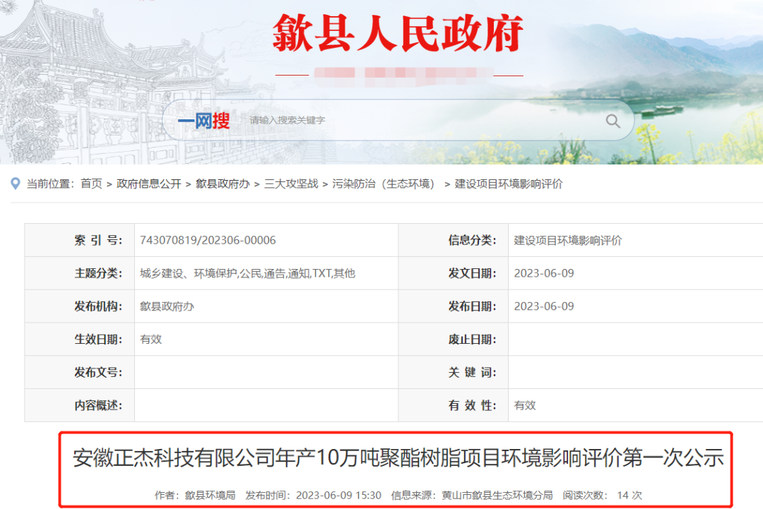 繼蚌埠項目年產(chǎn)12 萬噸聚酯樹脂項目(一期)投產(chǎn)后,正杰集團馬不停蹄繼續(xù)擴產(chǎn)升級。近日,黃山市歙縣生態(tài)環(huán)境分局對外發(fā)布《安徽正杰科技有限公司年產(chǎn)10萬噸聚酯樹脂項目環(huán)境影響評價第一次公示》。