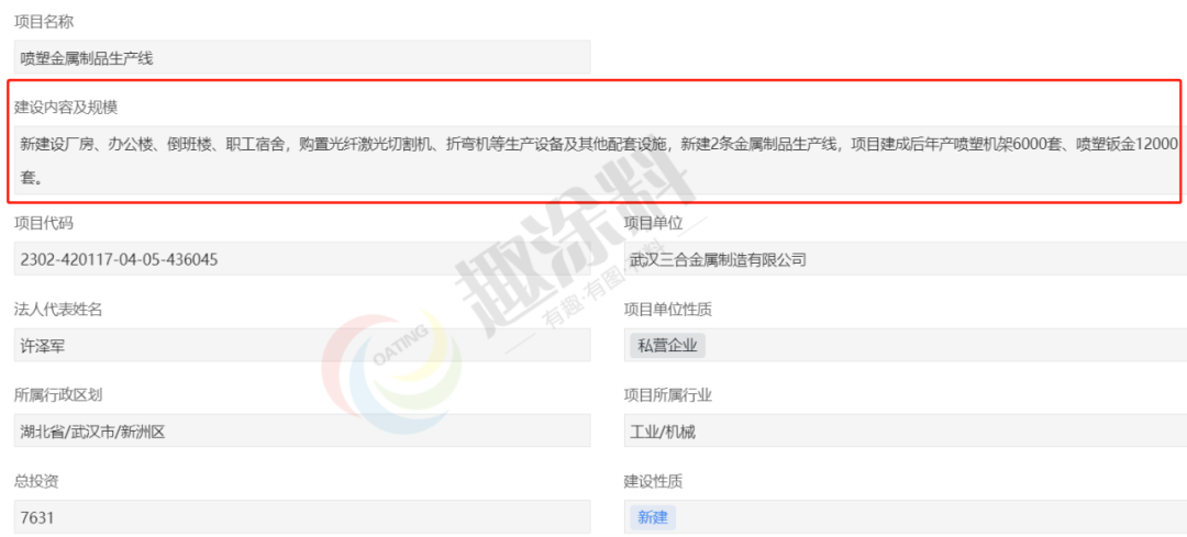 2023年2月20日,武漢三合金屬制造有限公司,噴塑金屬制品生產(chǎn)線,進(jìn)行企業(yè)項(xiàng)目備案。