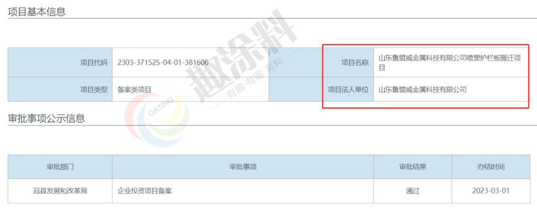 2023年2月28日,山東魯盟威金屬科技有限公司,噴塑護(hù)欄板搬遷項(xiàng)目,在冠縣發(fā)展和改革局,進(jìn)行企業(yè)投資項(xiàng)目備案。