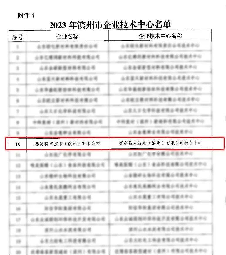 近日,山東省濱州市發(fā)展和改革委員會(huì)對(duì)外公布《關(guān)于發(fā)布2023年新認(rèn)定及全部濱州市企業(yè)技術(shù)中心名單的通知》。趣涂料(趣涂網(wǎng))注意到,經(jīng)審定,賽高粉末技術(shù)(濱州)有限公司(下稱“賽高”)被認(rèn)定為具有濱州市企業(yè)技術(shù)中心資質(zhì)。