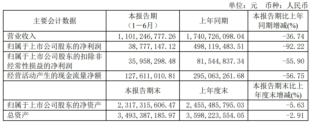 半年報顯示,今年上半年宏昌電子實現營業(yè)收入11.01億元,同比上年度下降36.74%,實現歸屬于上市公司股東的凈利潤3877.71萬元,同比上年度下降92.22%。其中環(huán)氧樹脂業(yè)務方面實現凈利潤2423.7萬元;覆銅板、半固化片業(yè)務方面實現凈利潤 1472.07萬元。