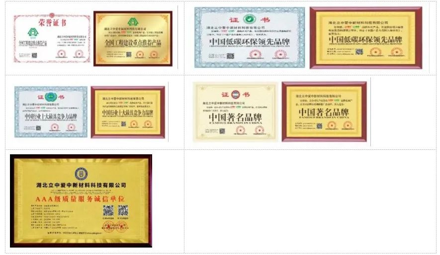 立中愛(ài)中粉末先后獲得全國(guó)工程建設(shè)重點(diǎn)推薦產(chǎn)品獎(jiǎng)、中國(guó)低碳環(huán)保領(lǐng)先品牌、中國(guó)行業(yè)十大最具競(jìng)爭(zhēng)力品牌和中國(guó)著名品牌等榮譽(yù)。