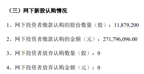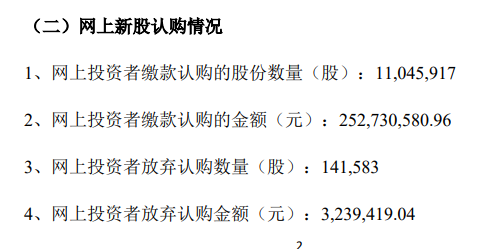 2023年10月26日,惠柏新材料科技(上海)股份有限公司(下稱“惠柏新材”)新股發(fā)行結果出爐。根據惠柏新材公布新股發(fā)行結果顯示,網上投資者認購數量為1104.59萬股,認購金額為2.53億元,網上投資者棄購數量為14.16萬股,網上棄購率為1.265500%,棄購金額為323.94萬元,網下投資者全額認購。本次新股發(fā)行,投資者放棄認購股數全部由主承銷商包銷;包銷股份的數量占發(fā)行總量的比例為0.61%。