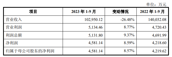 同日,惠柏新材對外發(fā)布《首次公開發(fā)行股票并在創(chuàng)業(yè)板上市招股說明書》。根據披露,惠柏新材預計2023年1-9月實現營業(yè)收入10.3億元,同比下降26.48%;預計2023年1-9月歸屬于母公司股東的凈利潤為4581.14萬元,同比增長8.57%。