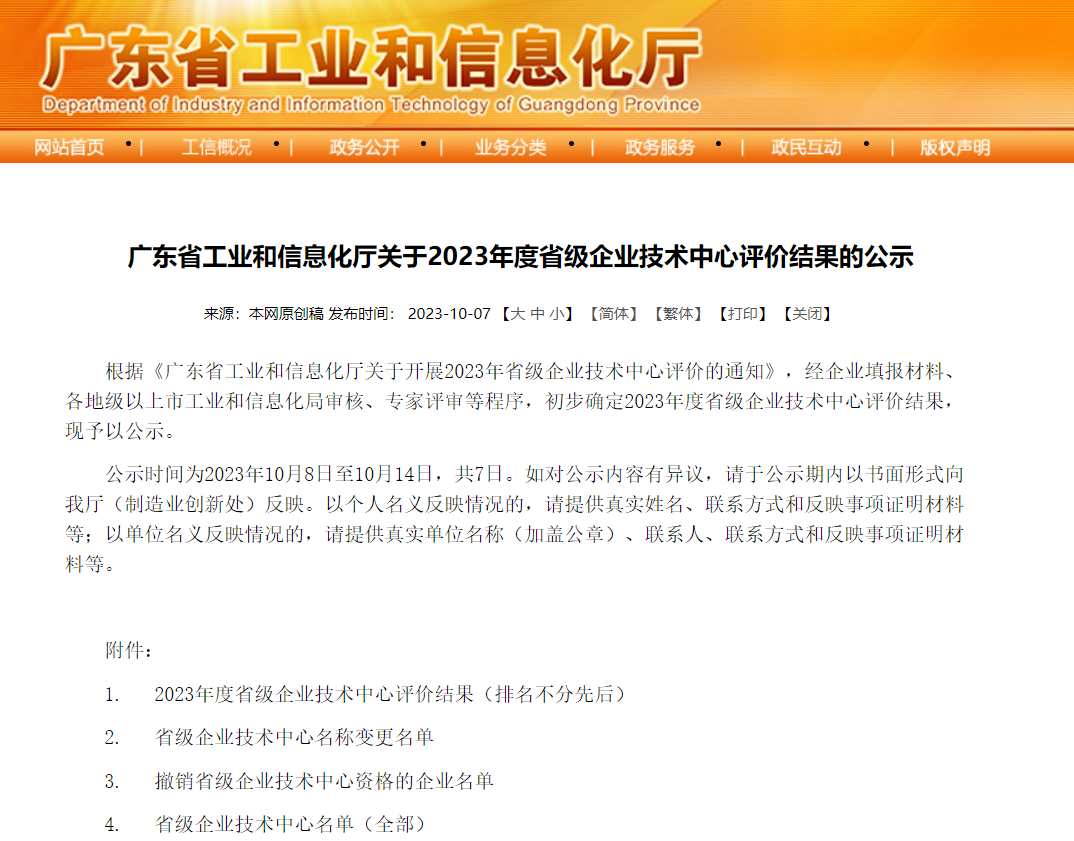近日,廣東省工業(yè)和信息化廳對(duì)外發(fā)布了《關(guān)于2023年度省級(jí)企業(yè)技術(shù)中心評(píng)價(jià)結(jié)果》的公示。