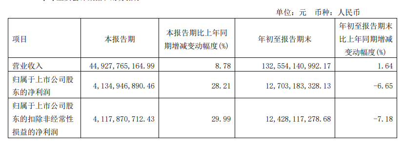 財(cái)報(bào)顯示,萬華化學(xué)2023年前三季度,其實(shí)現(xiàn)營業(yè)收入1325.54億元,同比增長1.64%;歸母凈利潤為127.03億元,同比下降6.65%;扣非歸母凈利潤124.28億元,同比下降7.2%。