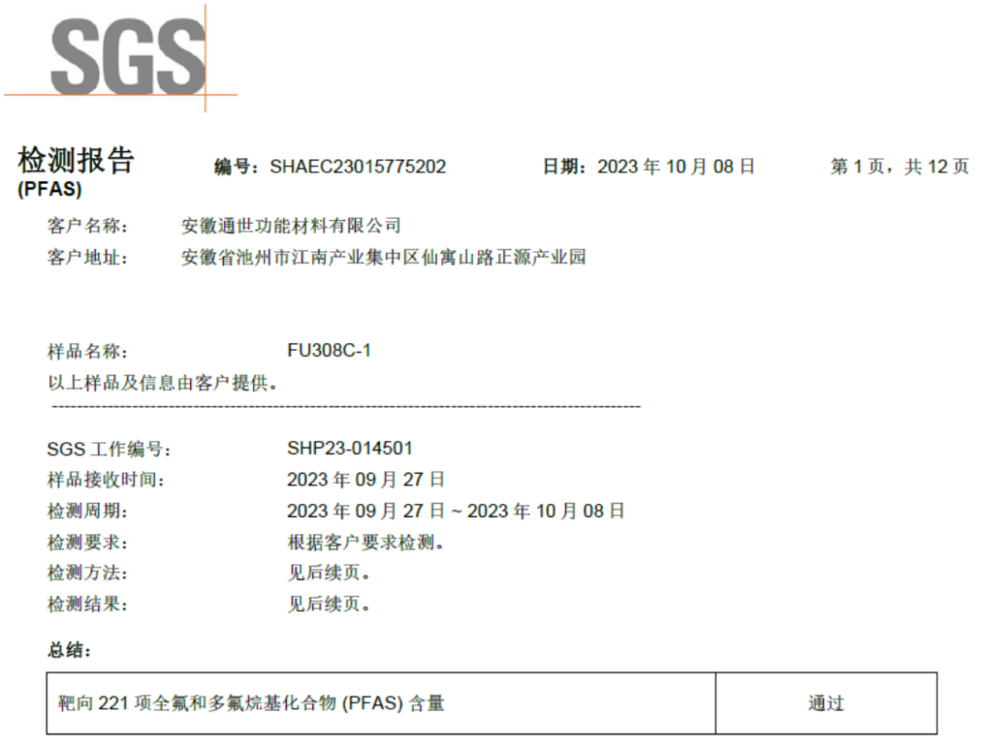 根據(jù)最新《關(guān)于限制全氟辛烷磺酸銷售及使用的指令》,現(xiàn)已通過SGS靶向221項全氟和多氟烷基化合物(PFAS)含量檢測。