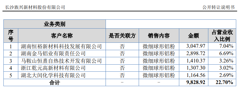 此外,2023年1月—8月前五名銷售客戶分別為:湖南恒裕新材料科技發(fā)展有限公司、湖南金馬鋁業(yè)有限責(zé)任公司、馬鞍山恒熹自熱技術(shù)開發(fā)有限公司、浙江乾元高新材料有限公司和湖北大閏化學(xué)科技有限公司。