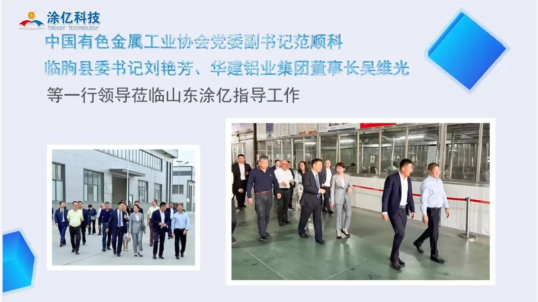 在這一年里,涂億公司還迎來了多位領導的蒞臨指導。其中包括中國有色金屬工業(yè)協(xié)會黨委副書記范順科、臨朐縣委書記劉艷芳以及華建鋁業(yè)集團董事長吳維光等一行領導。他們的到訪不僅為涂億公司帶來了寶貴的行業(yè)經(jīng)驗和建議,也進一步提升了涂億公司在行業(yè)內的知名度和影響力。