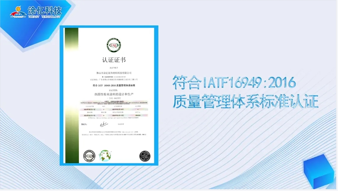 這些成果不僅體現(xiàn)了涂億科技在粉末涂料領域的專業(yè)實力和創(chuàng)新精神,更是對公司在推動行業(yè)標準化、國際化方面所做努力的最好證明。