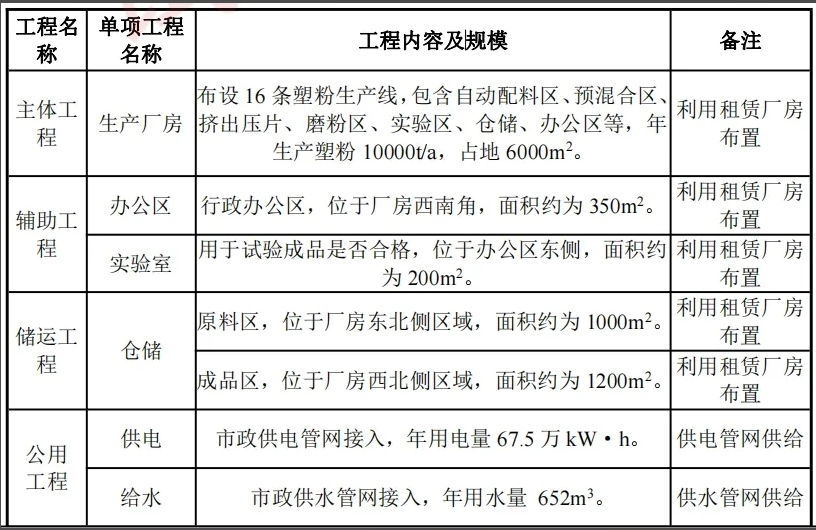 ②建設項目:年產(chǎn)1萬噸塑粉生產(chǎn)項目