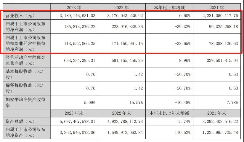 今年第一季度,美利信營收凈利潤雙降。公司實現(xiàn)營業(yè)收入約7.70億元,同比降6.38%;歸母凈利潤約615.80萬元,同比降88.93%。