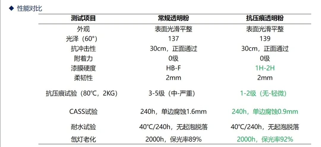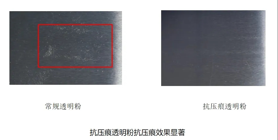該產(chǎn)品常規(guī)性能與常規(guī)丙烯酸產(chǎn)品相當(dāng),完全滿足汽車鋁輪轂的日常罩光要求,但在抗壓痕方面,具有明顯優(yōu)勢(shì)。監(jiān)測(cè)數(shù)據(jù)顯示,在常規(guī)產(chǎn)品單程運(yùn)輸壓痕比例高達(dá)60%的情況下,抗壓痕產(chǎn)品并未出現(xiàn)壓痕,改善效果明顯。