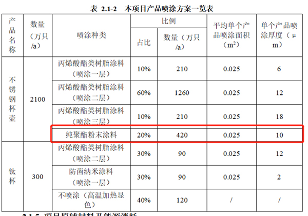 趣涂料(趣涂網(wǎng))注意到,富光實(shí)業(yè)生產(chǎn)的2100萬只不銹鋼杯壺,其中有20%計(jì)劃使用純聚酯粉末涂料進(jìn)行表面涂裝。