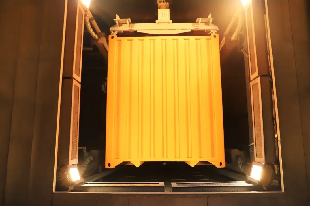 集裝箱整箱全粉末涂裝線比傳統(tǒng)涂裝線節(jié)約用工成本達90%以上。